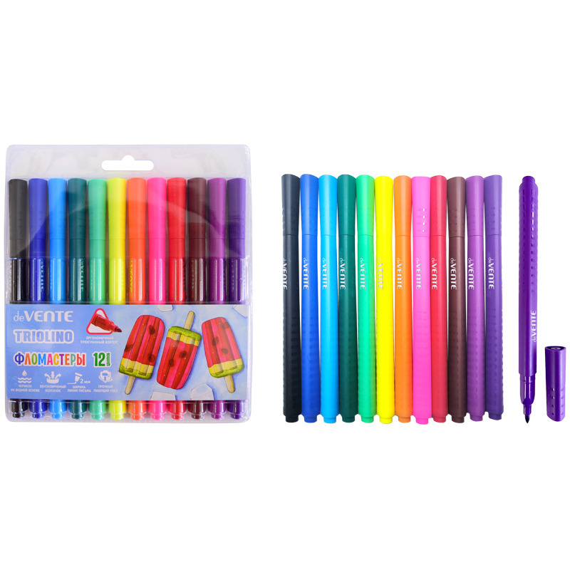 Фломастеры 12 цветов представляют собой незаменимую канцелярию для школьников и детей, увлекающихся рисованием и скетчингом. Они являются одними из самых популярных канцелярских продуктов и письменных школьных принадлежностей, которые отлично подойдут для детского творчества и использования детками и художниками разных возрастов. Большой набор состоит из 12 насыщенных и ярких цветов, таких как чёрный и зелёный, красный и синий, жёлтый и голубой и другие.