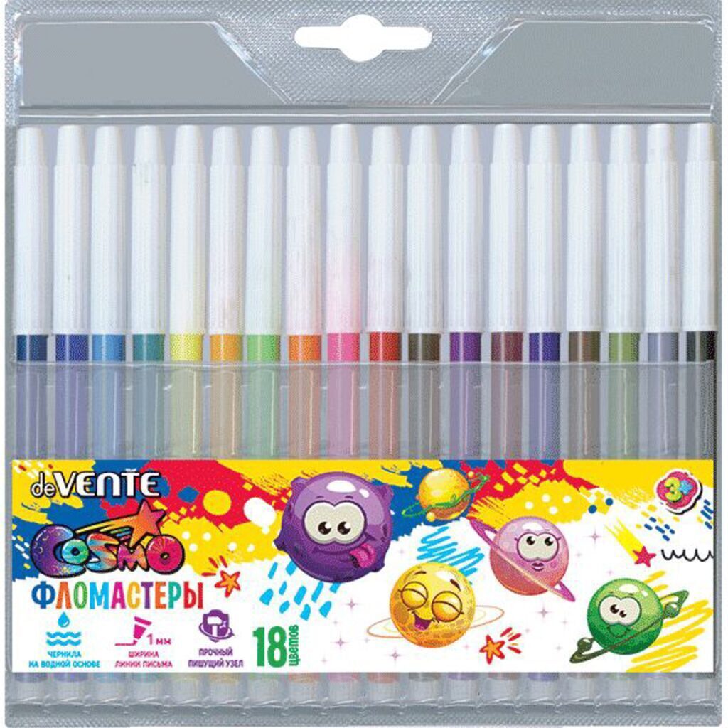 Фломастеры "deVENTE. Cosmo" 18 цветов с невентилируемым колпачком, в пластиковом блистере Длина - 140 мм