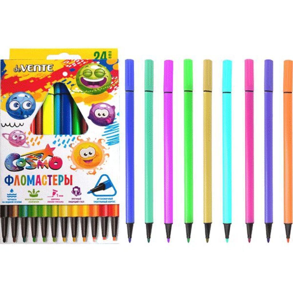 Фломастеры "deVENTE. Trio" 24 цвета, трехгранный корпус, с вентилируемым колпачком, в картонной коробке с подвесом