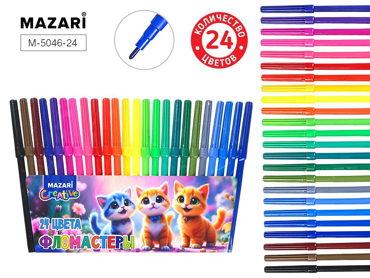 Фломастеры 24цв "Mazari. Котики" вентилир.колпачок
