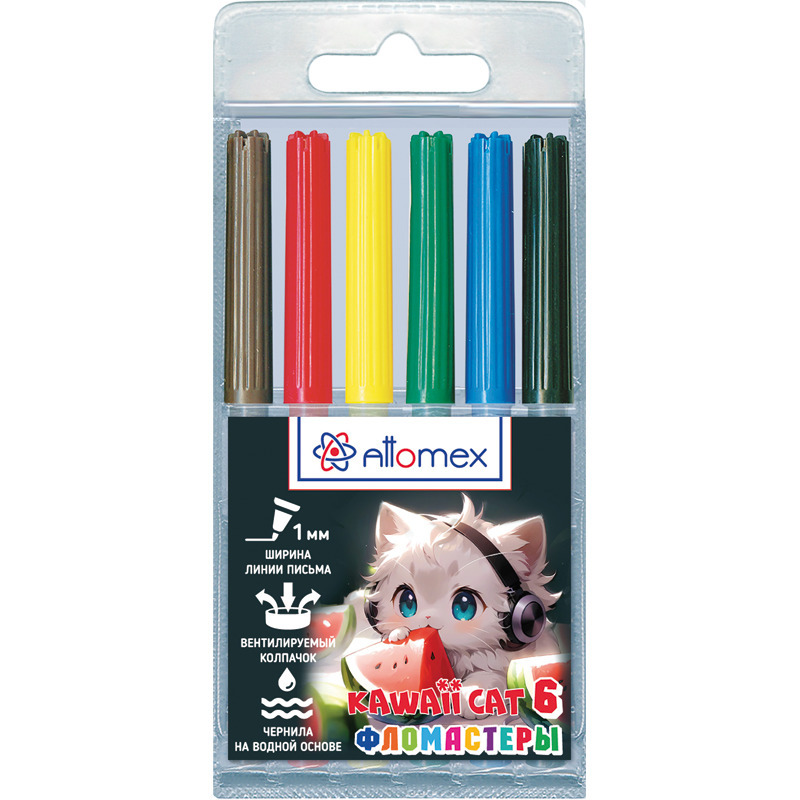 Фломастеры "Attomex. Kawaii Cat" 06 цветов с вентилируемым колпачком, в пластиковом блистере
