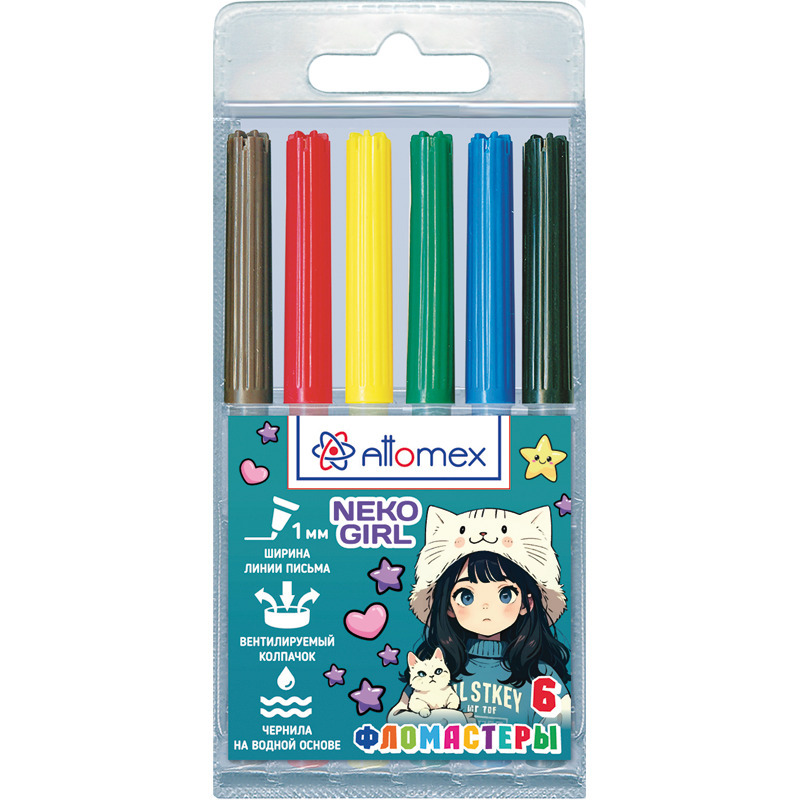Фломастеры "Attomex. NekoGirl" 06 цветов с вентилируемым колпачком, в пластиковом блистере