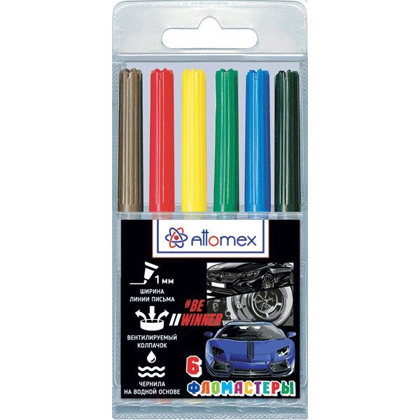 Фломастеры "Attomex. Speed Zone" 06 цветов с вентилируемым колпачком, в пластиковом блистере