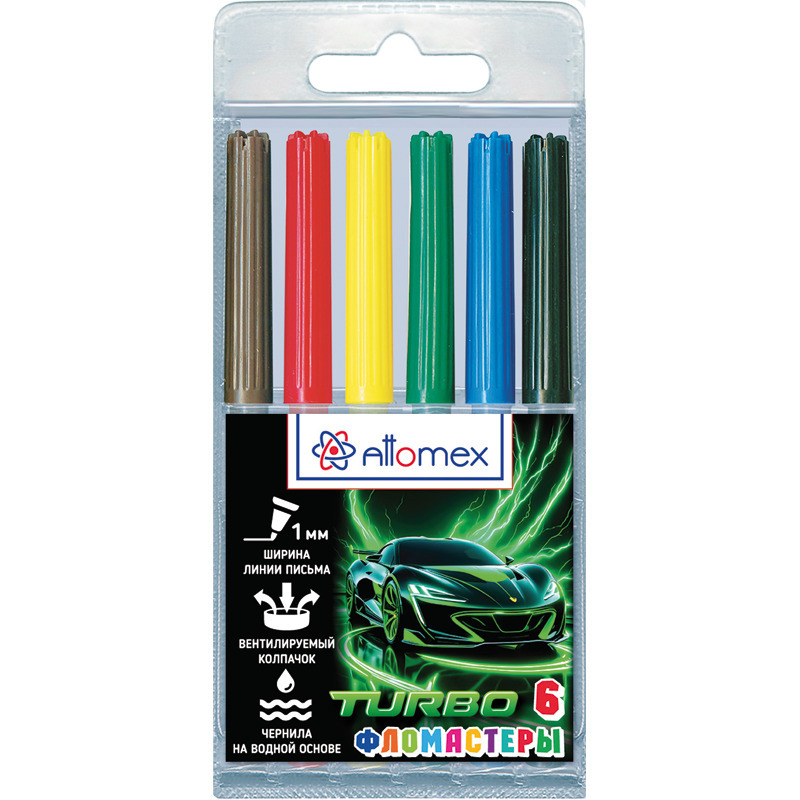 Фломастеры "Attomex. Turbo" 06 цветов с вентилируемым колпачком, в пластиковом блистере
