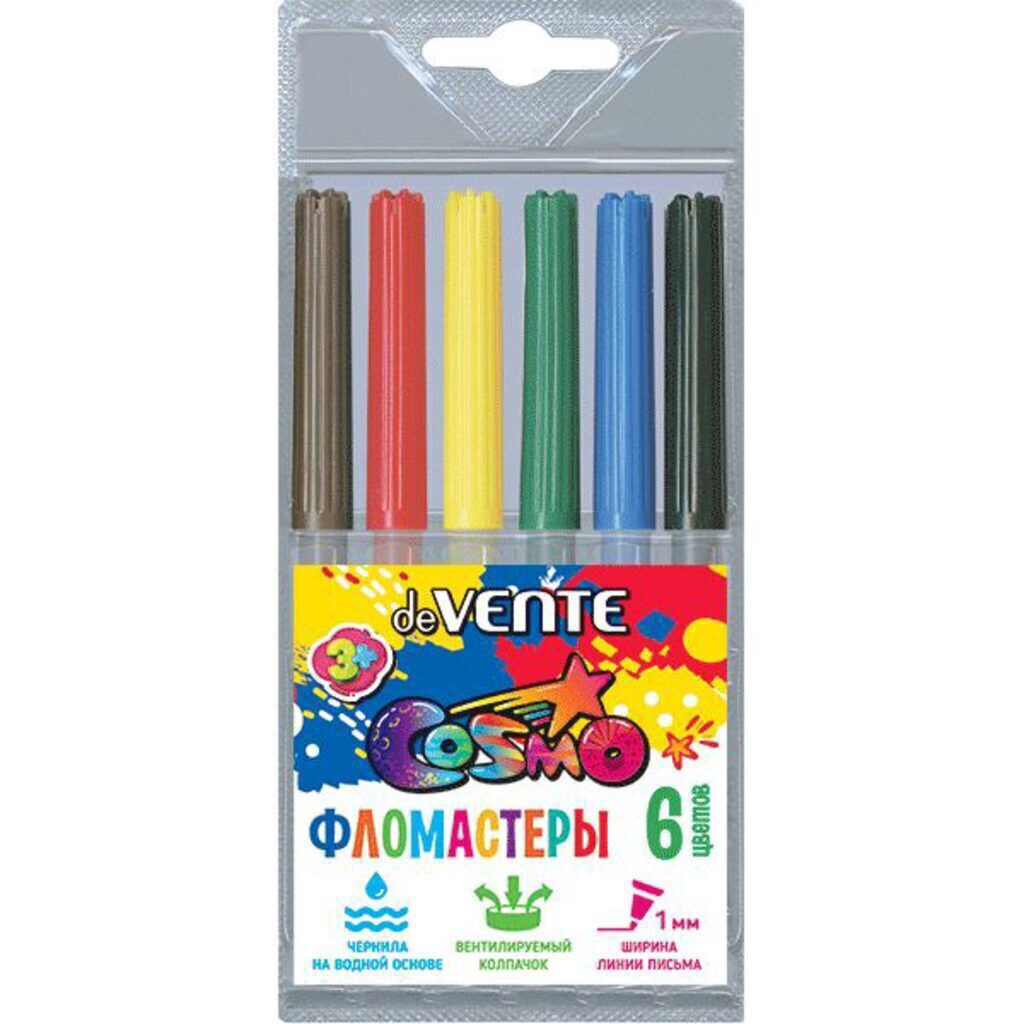 Фломастеры "deVENTE. Cosmo" 06 цветов с вентилируемым колпачком, в пластиковом блистере