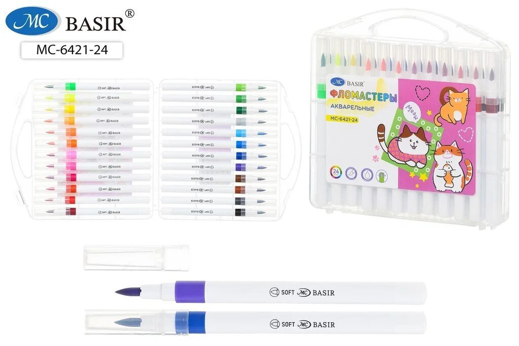 Фломастеры-кисточки, которые имитируют художественную кисть — наконечник легко сминается и оставляет характерный след. Данная продукция обладает яркими, сочными цветами чернил на водной основе, а прочный пишущий узел не деформируется при эксплуатации. Набор фломастеров-акварельные: с мягкой кистью, на водной основе; белый корпус, вентилируемый колпачок, упаковка-пластмассовый бокс, 24 цвета.