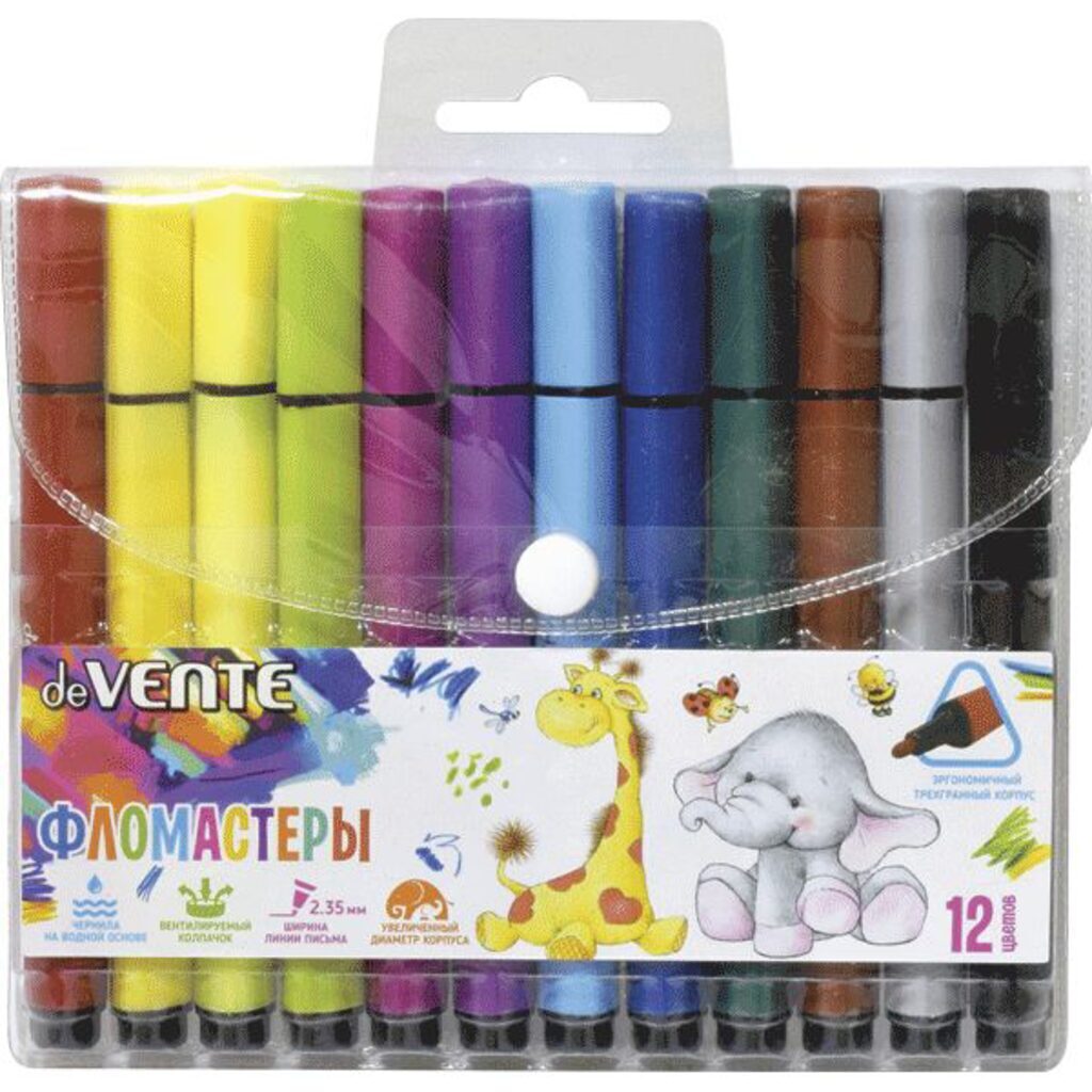 Фломастеры "deVENTE. Trio Jumbo" 12 цветов, утолщенный трехгранный корпус 10x129 мм, с вентилируемым колпачком, в пластиковом блистере