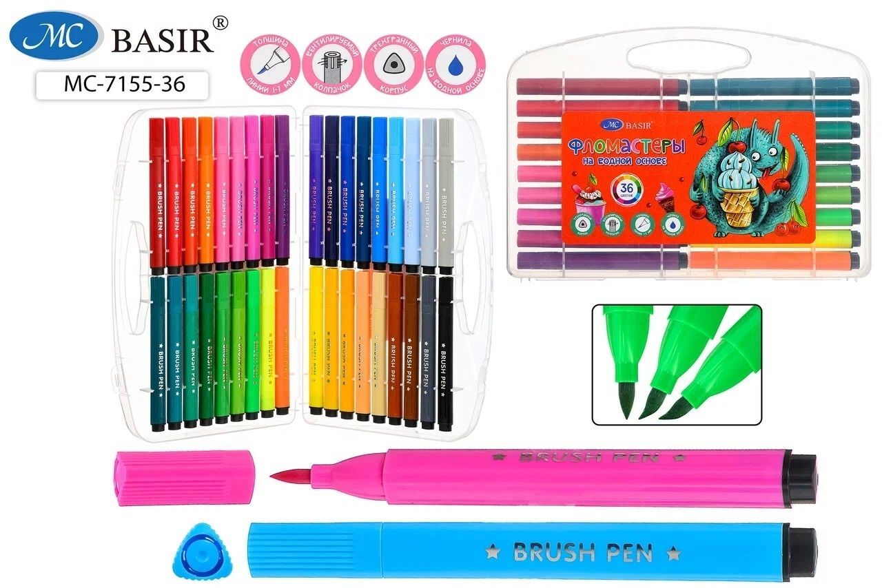 Фломастеры кистевидные 36цв "Basir. Монстрики", 1-7мм, на водн.основе