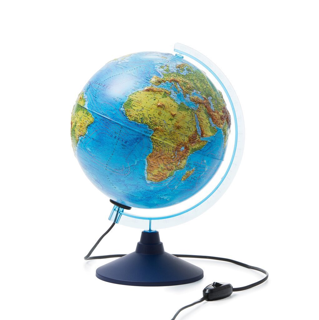 Глобус д-р 250 Физико-политический, подсветка, классик, рельефный, евро, карт.короб
