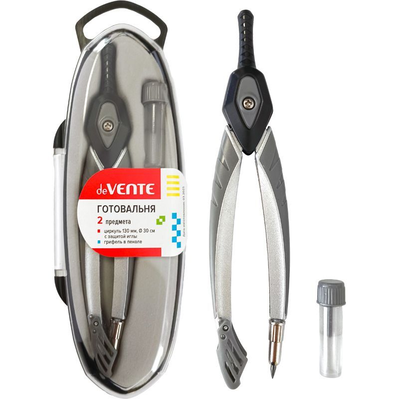 Готовальня "deVENTE." (02 предмета) в пластиковом футляре с черным ложементом, цвет футляра - чёрный, цвет циркуля серебристый с серым.