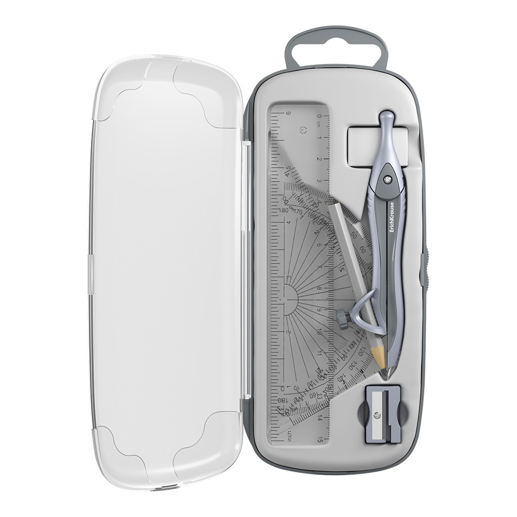 Готовальня ErichKrause Classic, 7 предметов, пенал, серый