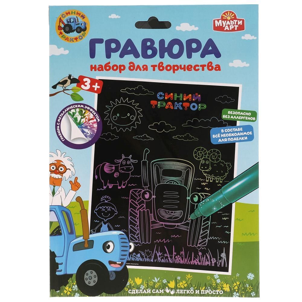Гравюра 18*24см голография "Синий Трактор" 3+