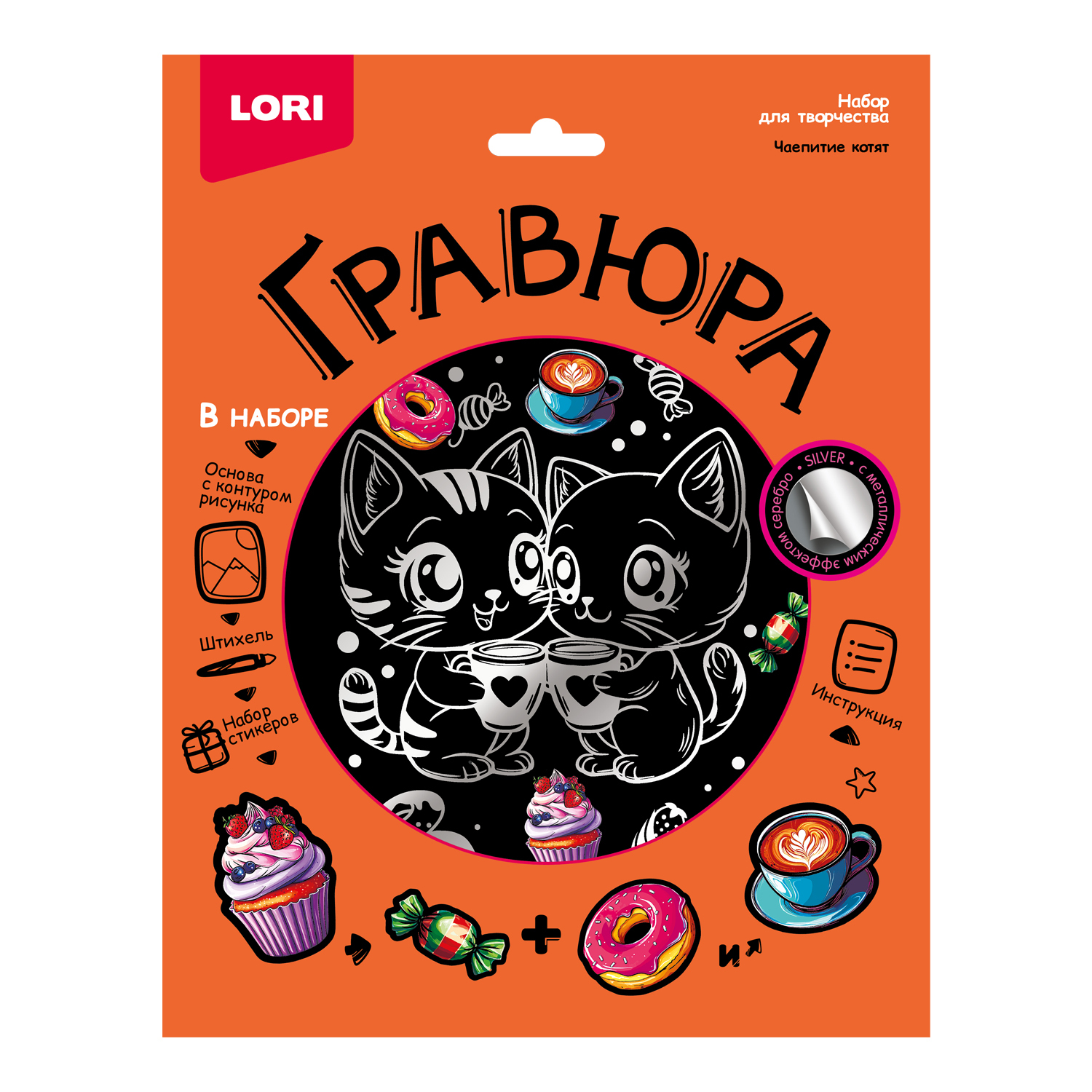 Гравюра 18*24см серебро "Чаепитие котят" 6+