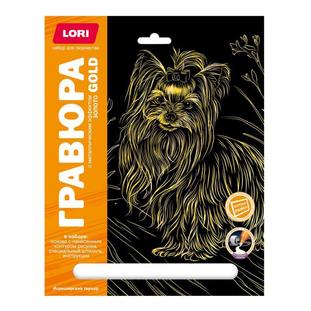 Гравюра 18*24см золото Собаки "Йоркширский терьер"