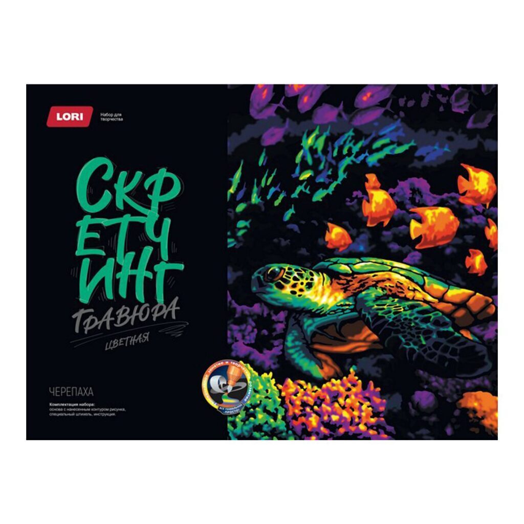 Гравюра-скретчинг 30*40см цветная "Черепаха" 6+