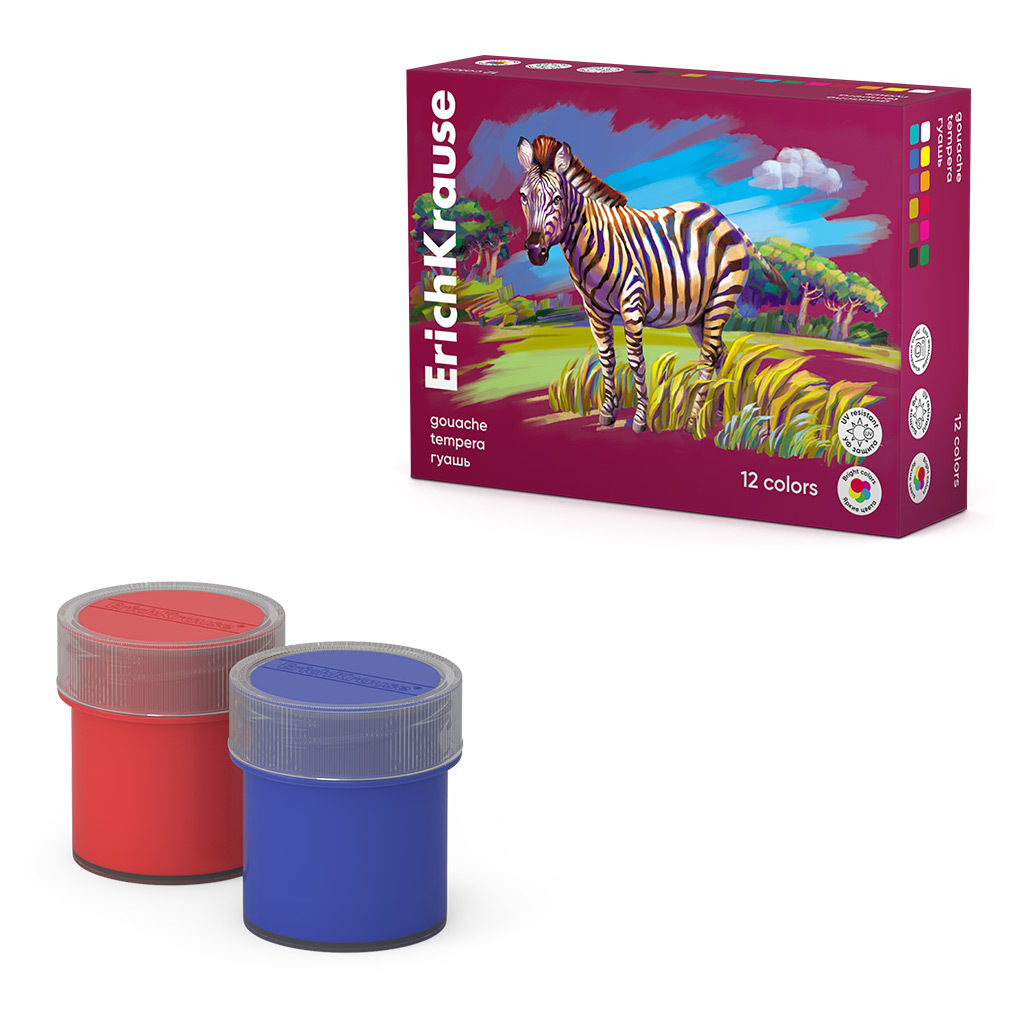 Гуашь 12цв 240мл Erich Krause Safari с УФ защитой яркости