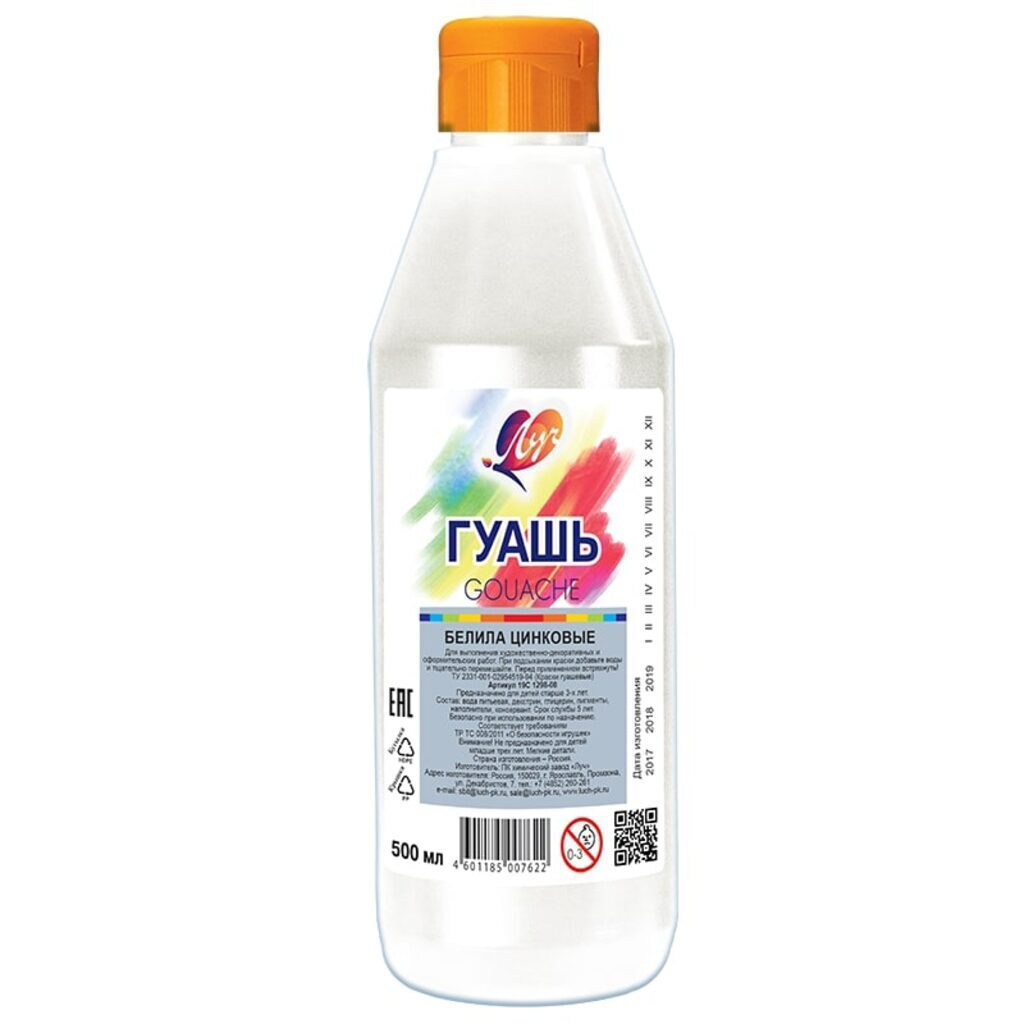 Гуашь художественная Луч 500мл белила цинковые, бутылка