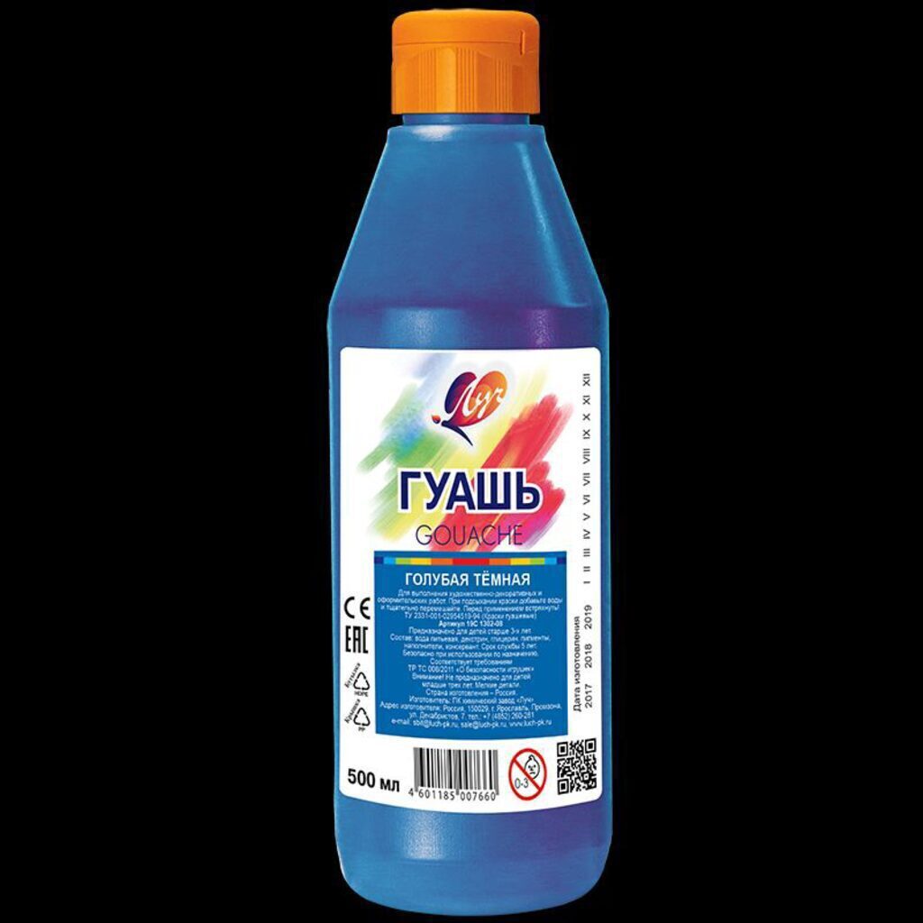 Гуашь художественная Луч 500мл голубая темная, бутылка