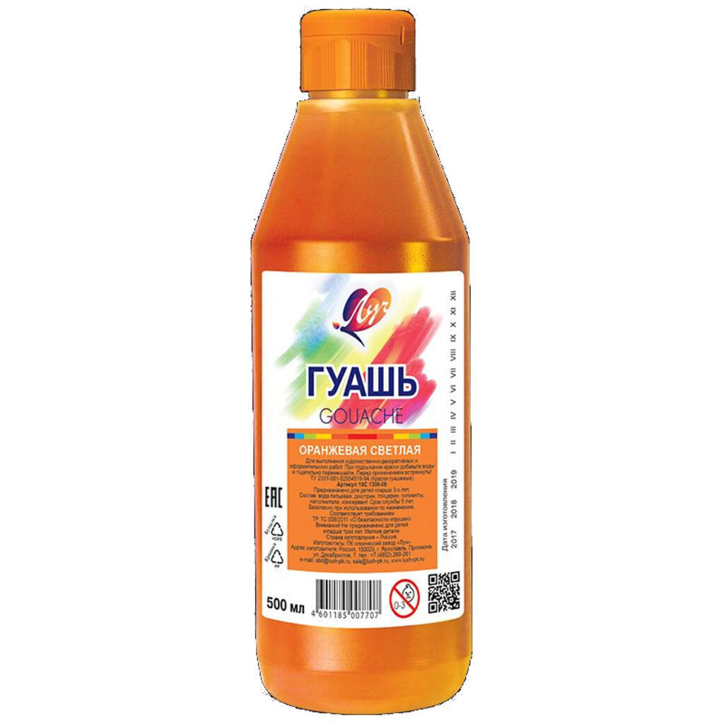 Гуашь художественная Луч 500мл оранжевая светлая, бутылка