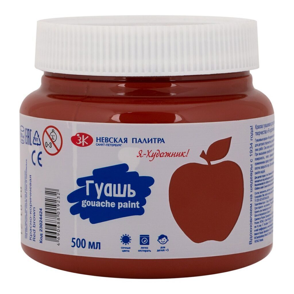 Гуашь художественная ЗХК "Я-Художник!" 500мл красно-коричневая, банка