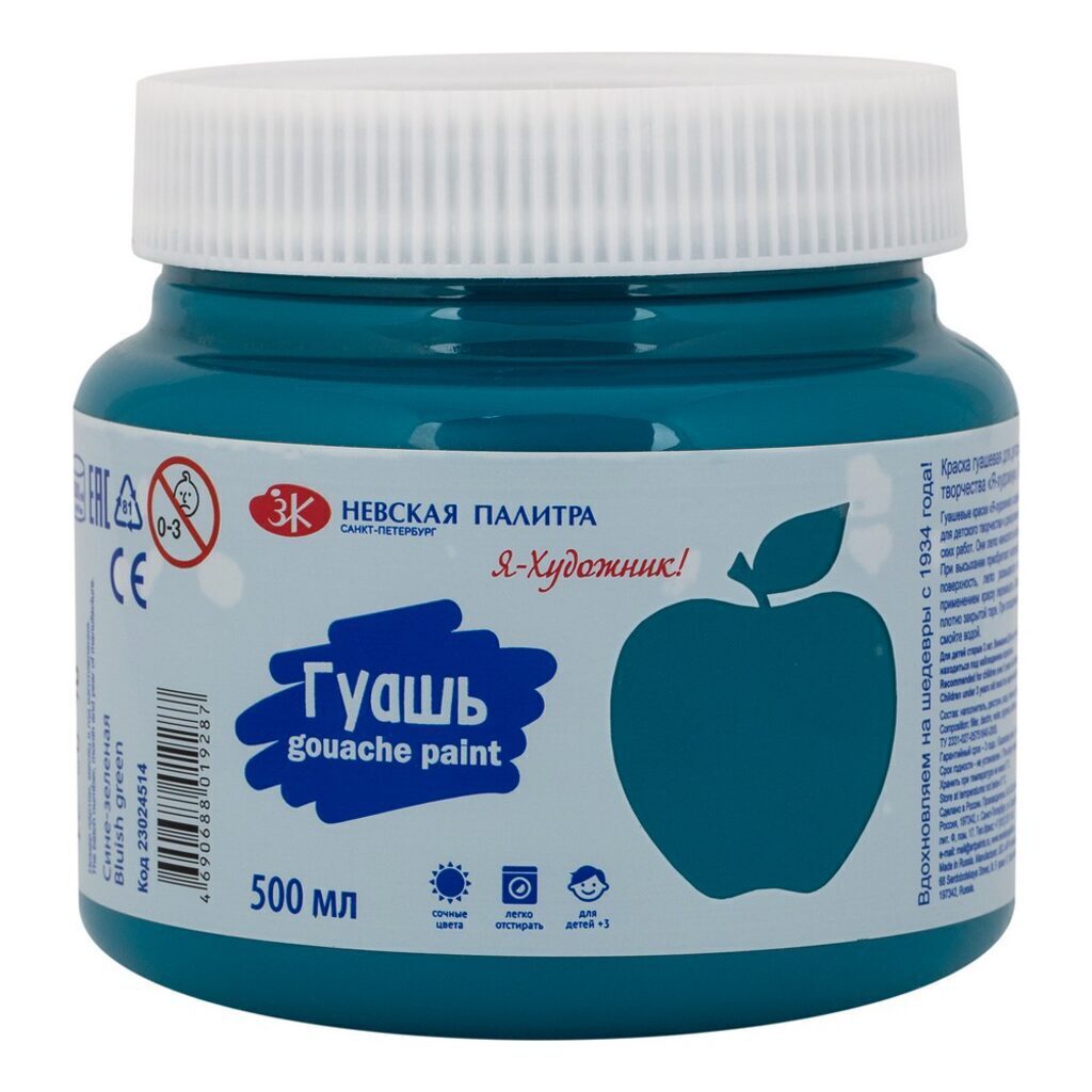 Гуашь художественная ЗХК "Я-Художник!" 500мл сине-зелёная, банка