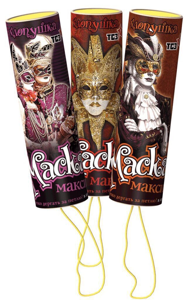Хлопушка "Макси с сюрпризом " 32*120мм ( карнавальная маска )