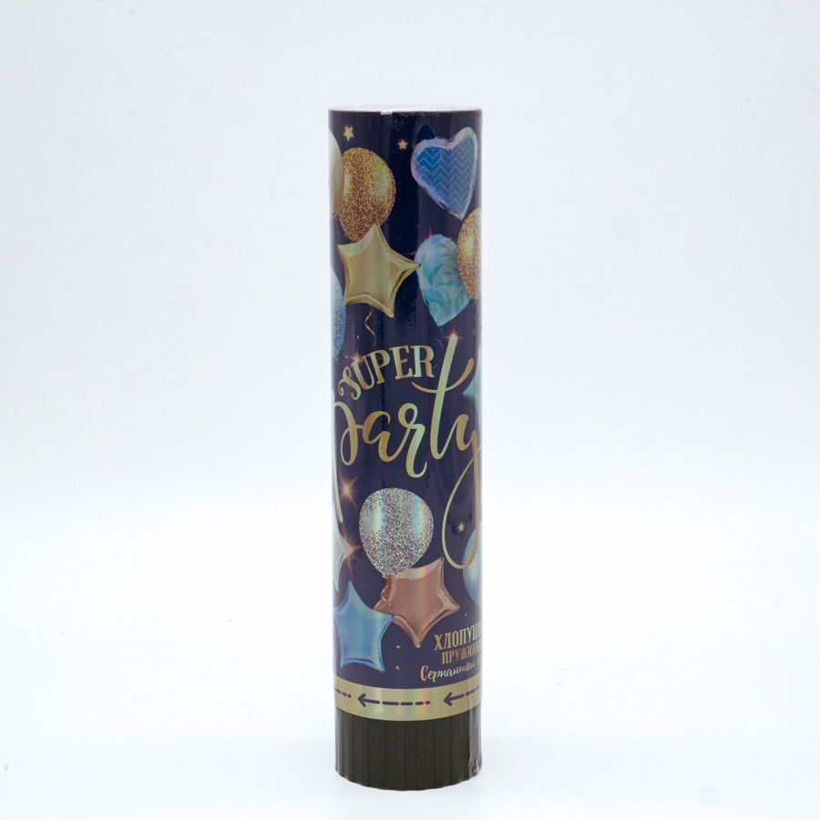 Хлопушка пневматическая 20см "Супер Пати" серпантин фольга, голубой