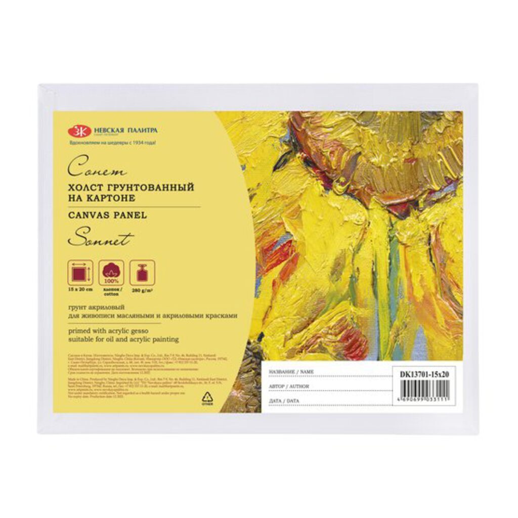 Холст на картоне 15*20 см "Сонет" 100% хлопок, 280 г/м2, мелкое зерно