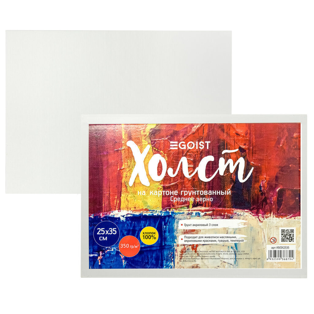 Холст на картоне 25*35 см "Egoist" 100% хлопок, 350 г/м2, среднее зерно