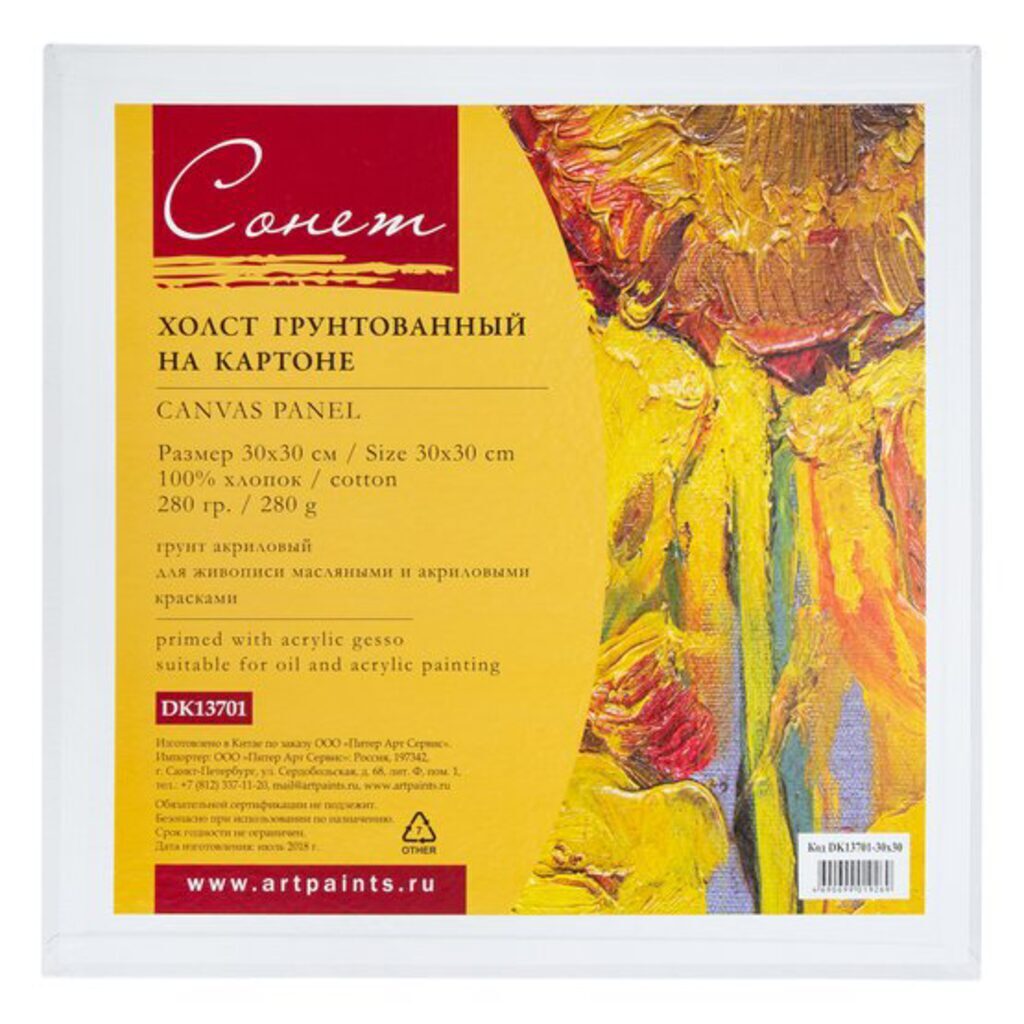Холст на картоне 30*30 см "Сонет" 100% хлопок, 280 г/м2, мелкое зерно