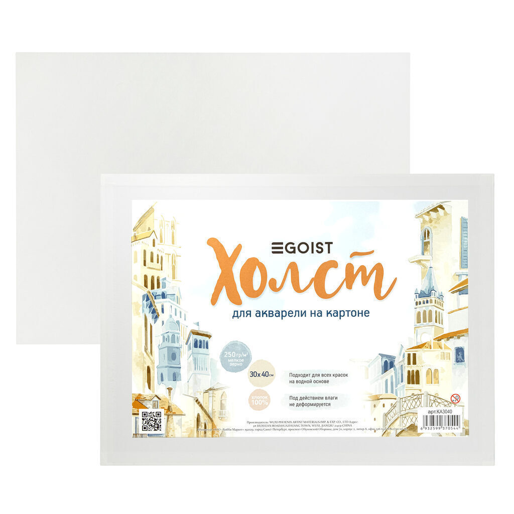 Холст на картоне для акварели 30*40 см "Egoist" 100% хлопок, 250 г/м2, мелкое зерно