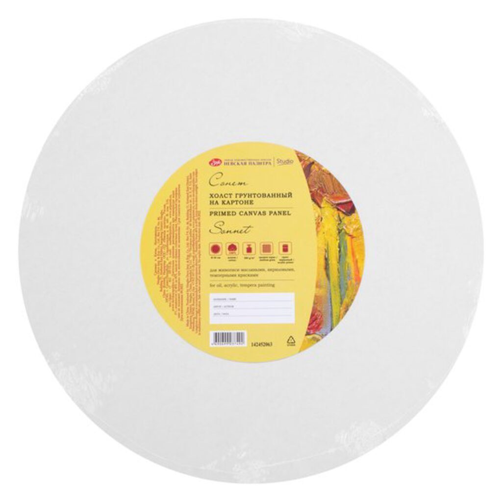 Холст на картоне Круглый D30см "Сонет" 100% хлопок, 280 г/м2, среднее зерно