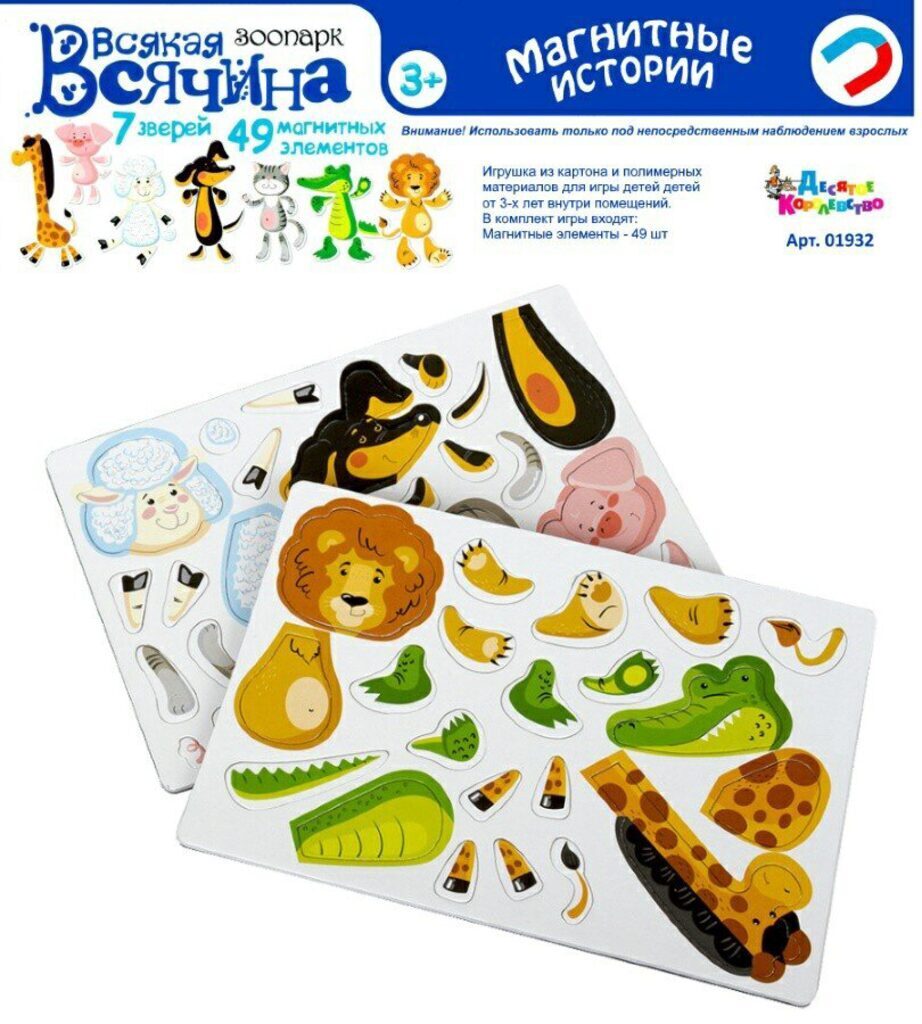 Игра магнитная "Всякая всячина. Зоопарк" (7 зверей) 49 элементов 3+