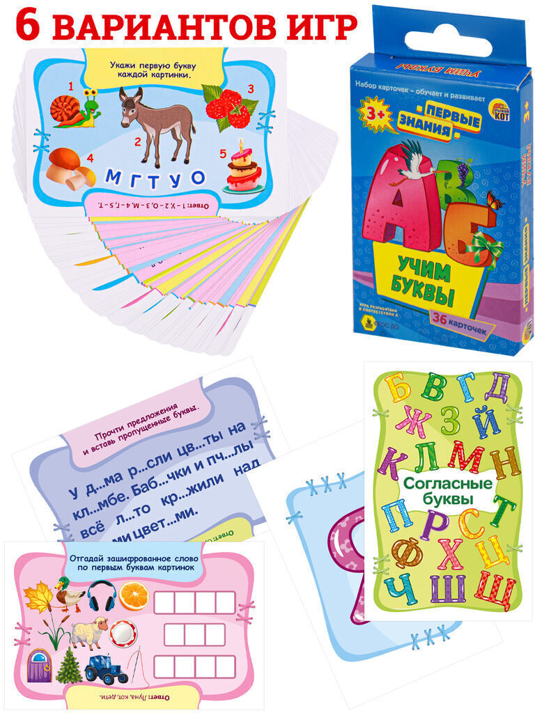 Игра обучающая "Первые знания. Учим буквы" 36 карточек
