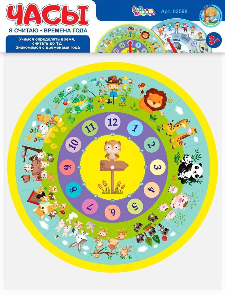 Игра развивающая "Часы. Я считаю. Времена года" 3+