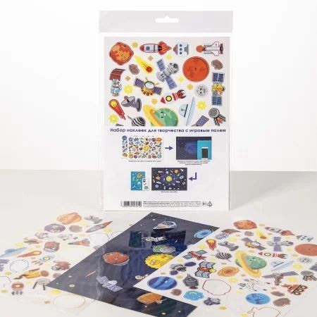 Набор наклеек для творчества включает в себя два листа с большим количеством ярких тематических наклеек. Кроме того, в комплект входит игровое поле формата А5, на которое, проявив смекалку и фантазию, можно наклеивать картинки-наклейки, с удовольствием погрузившись в творческий процесс. Так же наклейки можно использовать для украшения смартфонов, блокнотов, тетрадей и оформления открыток и подарков.Формат А5. Индивидуальная упаковка с европодвесом.
