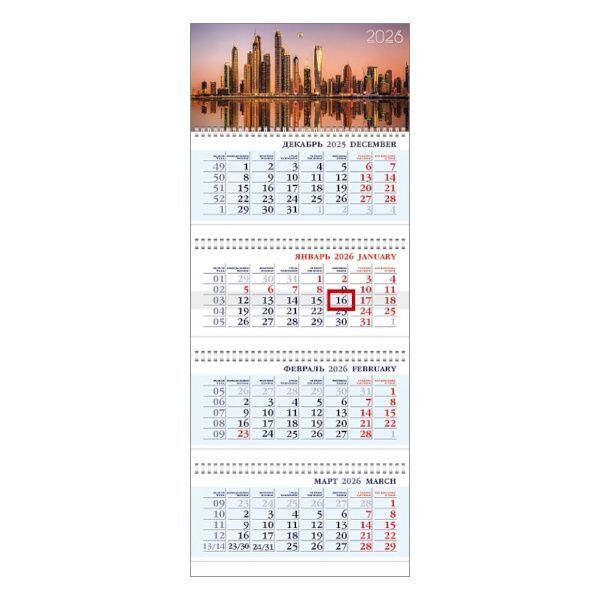 Календарь 4-блочный 297*755мм на 2026г. Небоскребы