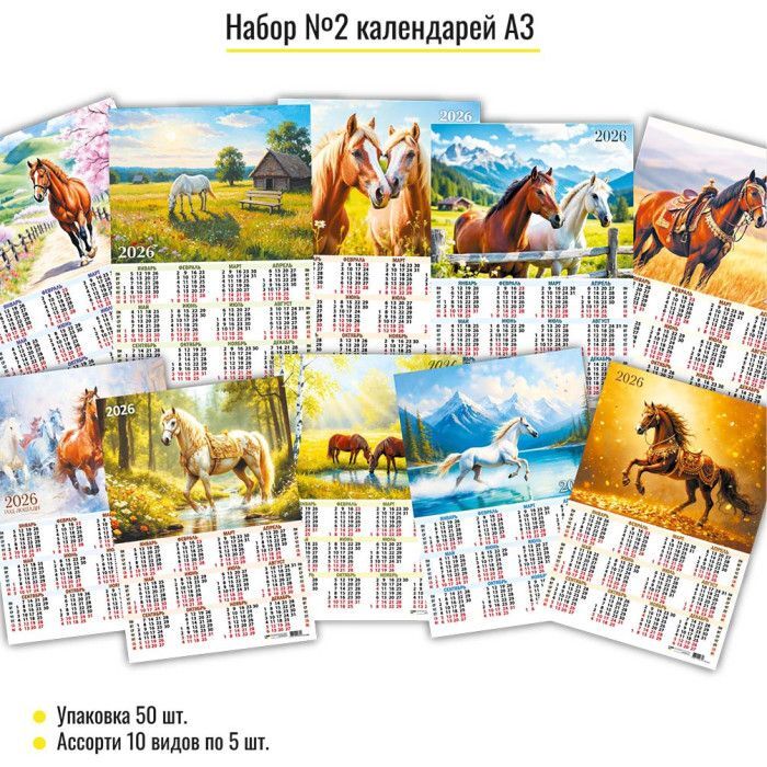 Календарь листовой 297*420мм на 2026г. Ассорти.Символ года.10в.по 5шт.