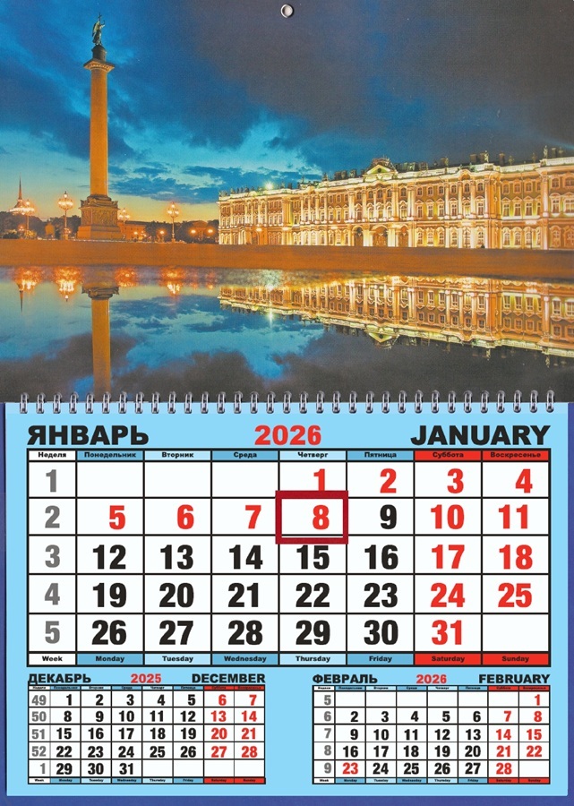 Календарь настенный 310*420мм на 2026г. ОДНОБЛОЧНЫЙ с курсором и календ.сеткой "Дворцовая площадь"