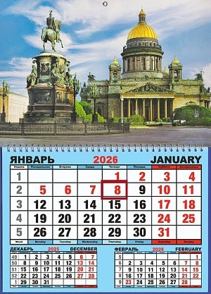 Календарь настенный 310*420мм на 2026г. ОДНОБЛОЧНЫЙ с курсором и календ.сеткой "Исаакий "