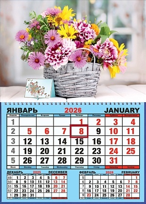 Календарь настенный 310*420мм на 2026г. ОДНОБЛОЧНЫЙ с курсором и календ.сеткой "Корзина с цветами"