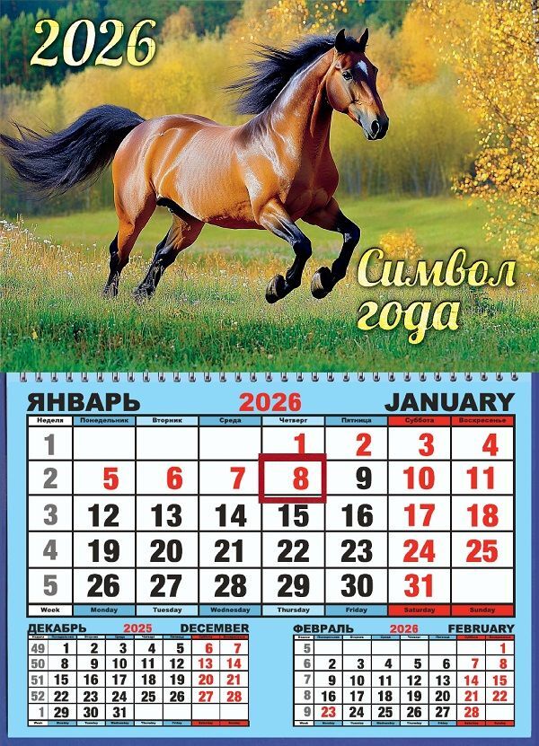 Календарь настенный 310*420мм на 2026г. ОДНОБЛОЧНЫЙ с курсором и календ.сеткой "Лошадь. Осень"