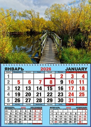 Календарь настенный 310*420мм на 2026г. ОДНОБЛОЧНЫЙ с курсором и календ.сеткой "Мостик на пруду"