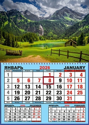 Календарь настенный 310*420мм на 2026г. ОДНОБЛОЧНЫЙ с курсором и календ.сеткой "Озеро в горах"