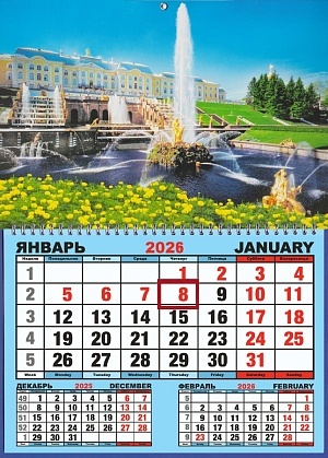 Календарь настенный 310*420мм на 2026г. ОДНОБЛОЧНЫЙ с курсором и календ.сеткой "Петергоф"