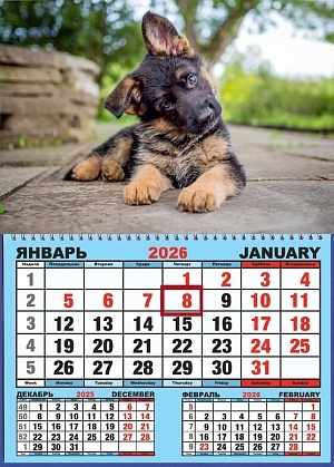 Календарь настенный 310*420мм на 2026г. ОДНОБЛОЧНЫЙ с курсором и календ.сеткой "Щенок"