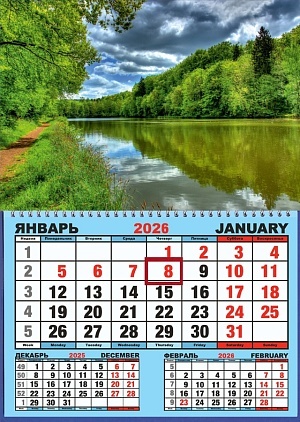 Календарь настенный 310*420мм на 2026г. ОДНОБЛОЧНЫЙ с курсором и календ.сеткой "Тропинка у реки"