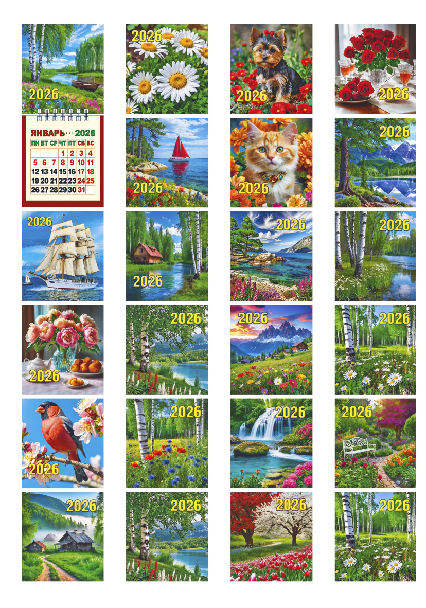 Календарь настенный 80*160мм на 2026г. отрывной МИНИ Ассорти