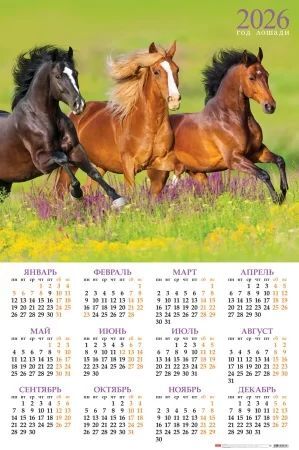 Календарь настенный листовой 598*900мм на 2026г. Год Лошади