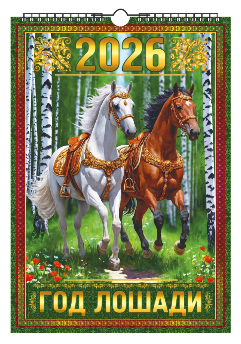 Календарь Ригель А3 350*510мм на 2026г. "Год Лошади."